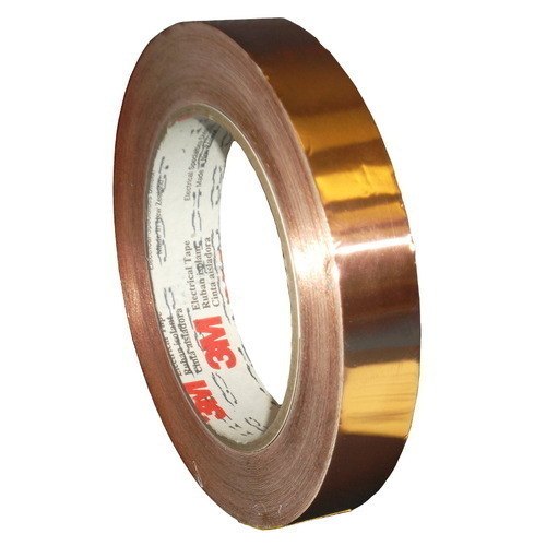3M™ Copper Foil Shielding Tape 1181 has a 1.4-mil smooth copper foil backing with a conductive acrylic pressure-sensitive adhesive and liner. The unplaced copper with conductive adhesive is a common EMI shielding tape for non-corrosive conditions.