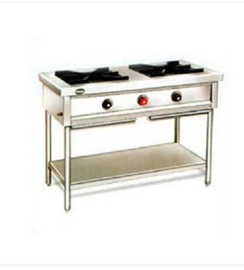 Captain King Dosa Bhatti Two Burner Commercial Gas Stove Stainless Steel Silver