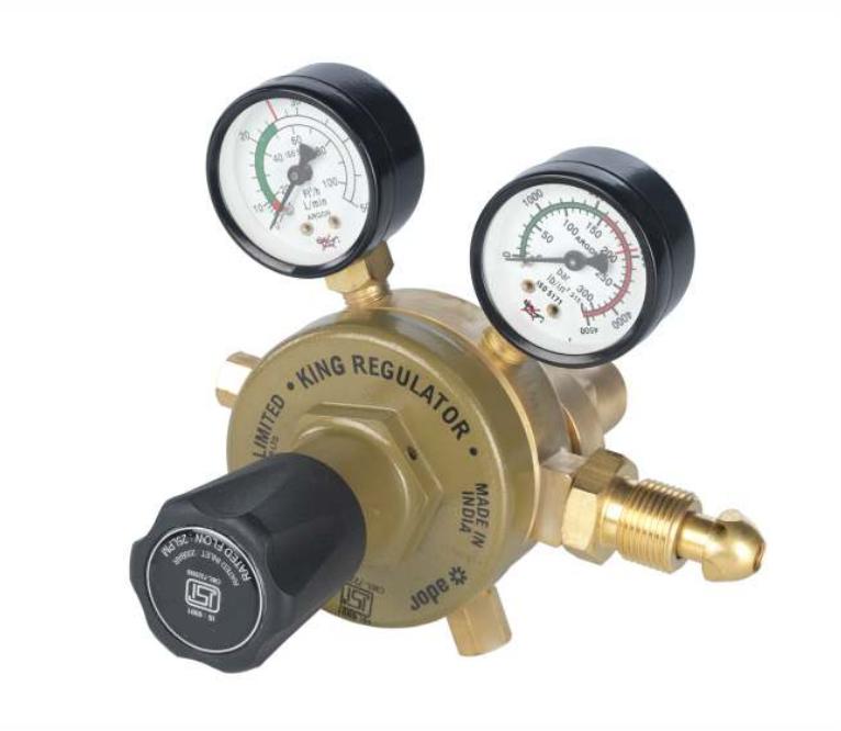 King Single Stage Gas Regulator (CO2) -Unbreakable moulded pressure adjusting knob. Unique profile rubber diaphragm. Stainless steel machined & ground valve spindle with Teflon moulded valve at the heart of the regulator. Sintered filter in the inlet, wire mesh filter in valve assembly.