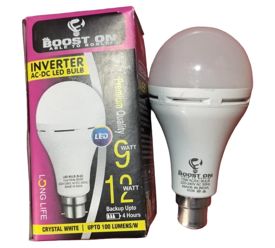 This item is an emergency rechargeable inverter LED bulb, designed to function as a regular light source and automatically turn on during power outages using a built-in battery. Power Efficiency: Utilizes energy-saving LED technology. Battery Backup: Offers rechargeable battery backup to provide light during power cuts, with some models offering up to 4 hours of illumination. Base Type: Features a standard B22 bayonet base. Dual Mode: Operates in regular AC mode while charging, and automatically switches to DC mode during power failures.