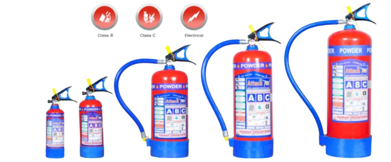 Dry Powder Stored Pressure ABC type Fire Extinguishers are suitable for class A,B & C fires as well as Electrical Fire.