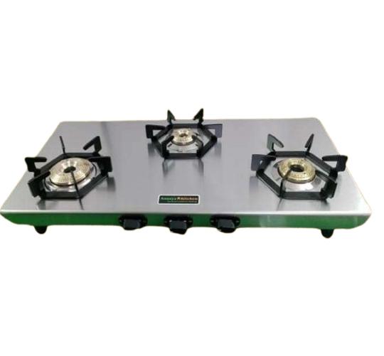 Hindware Cassia 3B Three Burner Commercial Gas Stove Stainless Steel Black