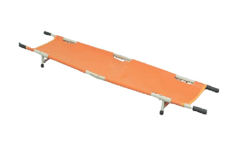 A Folding Stretcher is a portable device used for the safe and efficient transport of injured or immobilized individuals upto 120kg. It is commonly used in various settings, including hospitals, emergency medical services, search and rescue operations, and outdoor activities. The stretcher is constructed with a sturdy frame, typically made of lightweight materials such as aluminum or steel, to provide strength and durability. It is made of disinfectable and waterproof fabric with double side PVC coated tetron. The stretcher is designed to be foldable, allowing for compact storage and ease of transportation when not in use. It typically includes multiple foldable sections or hinges that allow the stretcher to be adjusted and folded into a more compact size.