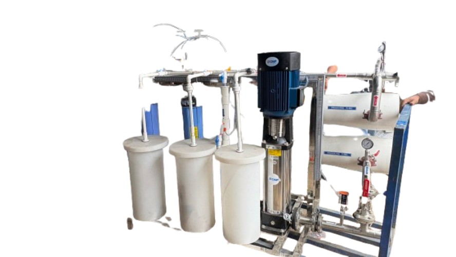 The Reverse Osmosis (RO) system is designed to treat borewell water with a permeate flow rate of 1000 LPH and an expected recovery of approximately 50%, depending on feed water quality. The system effectively removes dissolved salts, heavy metals, hardness, and microbial contaminants, making the water suitable for drinking and process applications. The plant features a robust design with UPVC interconnecting piping to ensure chemical resistance, durability, and ease of maintenance. It includes pre-filtration, high-pressure pumping, RO membrane assembly, and post-treatment components as required. The compact and efficient design makes it ideal for institutions, industries, and commercial establishments utilizing borewell water as their source.