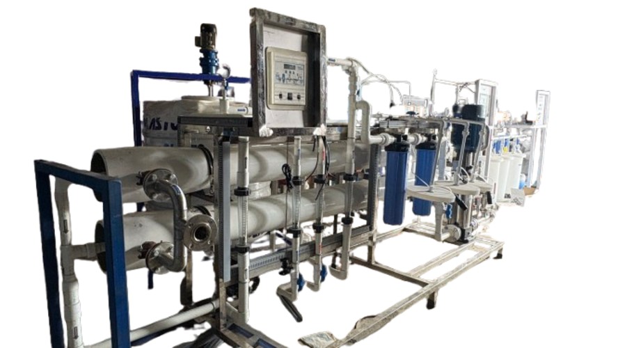 The Reverse Osmosis (RO) system is designed to treat borewell water with a permeate flow rate of 1000 LPH and an expected recovery of approximately 50%, depending on feed water quality. The system effectively removes dissolved salts, heavy metals, hardness, and microbial contaminants, making the water suitable for drinking and process applications. The plant features a robust design with UPVC interconnecting piping to ensure chemical resistance, durability, and ease of maintenance. It includes pre-filtration, high-pressure pumping, RO membrane assembly, and post-treatment components as required. The compact and efficient design makes it ideal for institutions, industries, and commercial establishments utilizing borewell water as their source.
