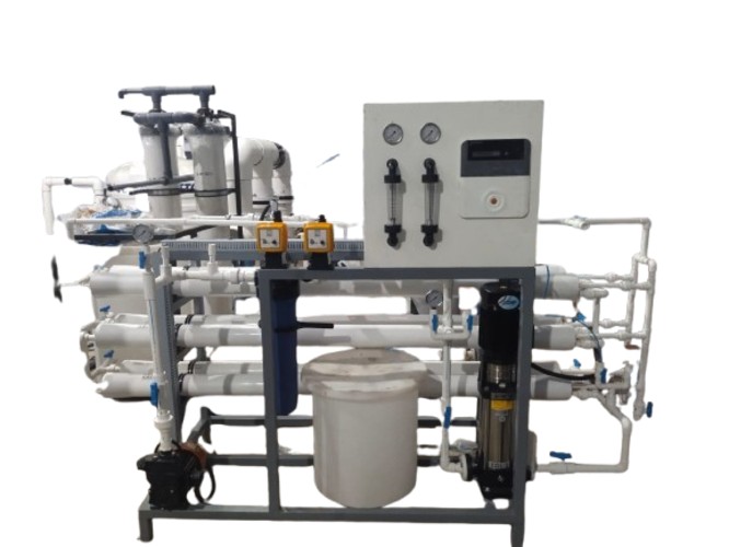 The Reverse Osmosis (RO) system is designed to treat borewell water with a permeate flow rate of 1000 LPH and an expected recovery of approximately 50%, depending on feed water quality. The system effectively removes dissolved salts, heavy metals, hardness, and microbial contaminants, making the water suitable for drinking and process applications. The plant features a robust design with UPVC interconnecting piping to ensure chemical resistance, durability, and ease of maintenance. It includes pre-filtration, high-pressure pumping, RO membrane assembly, and post-treatment components as required. The compact and efficient design makes it ideal for institutions, industries, and commercial establishments utilizing borewell water as their source.