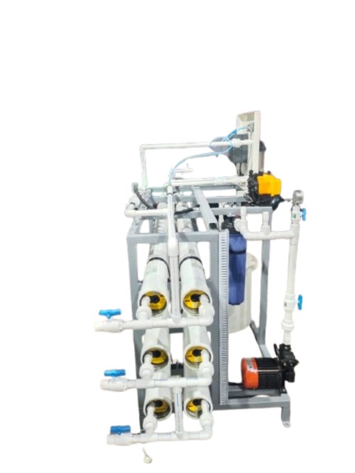 The Reverse Osmosis (RO) system is designed to treat borewell water with a permeate flow rate of 1000 LPH and an expected recovery of approximately 50%, depending on feed water quality. The system effectively removes dissolved salts, heavy metals, hardness, and microbial contaminants, making the water suitable for drinking and process applications. The plant features a robust design with UPVC interconnecting piping to ensure chemical resistance, durability, and ease of maintenance. It includes pre-filtration, high-pressure pumping, RO membrane assembly, and post-treatment components as required. The compact and efficient design makes it ideal for institutions, industries, and commercial establishments utilizing borewell water as their source.