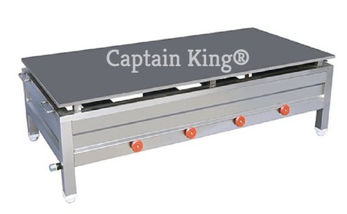 Captain King Dosa Bhatti Four Burner Commercial Gas Stove Stainless Steel Silver
