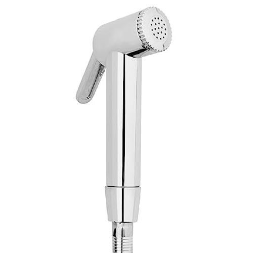 Health faucet ABS body with wall hook and 1 metre chrome plated PVC hose pipe Ultra shine 0.3 to 0.5 micron chromium plating, impeccable surface finish Package Contents: 1-Piece Health Faucet with Wall...