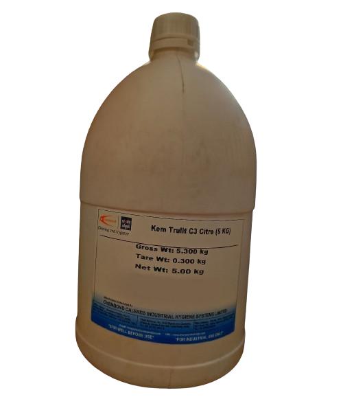 Kem tru-lit C-3 Citro is an acidic all purpose cleaner for application in commercial kitchens and other areas. It is an optimal blend of inorganic acids, surfactants and solvents, which makes it effective for removal of inorganic and organic deposits