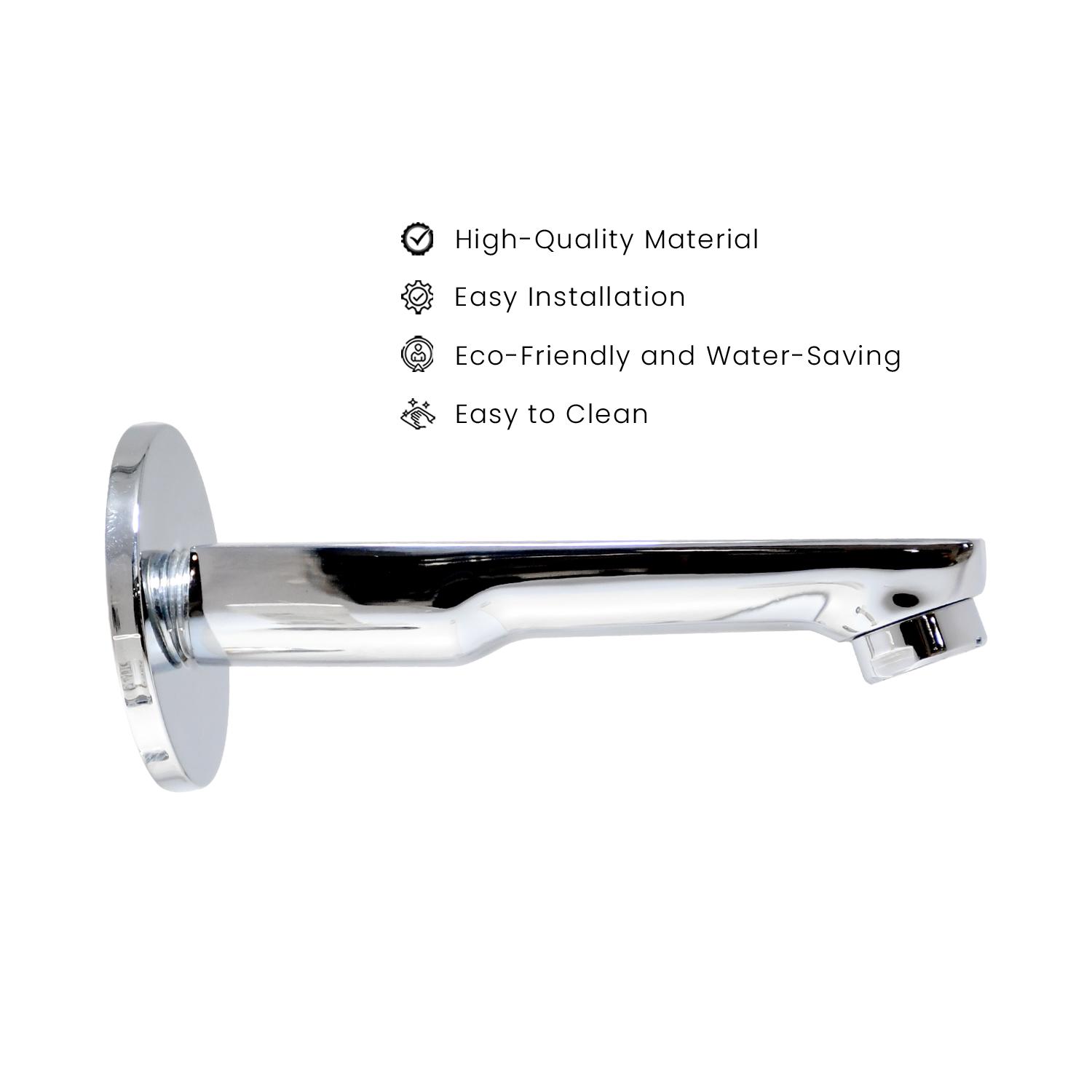 "Elevate your bathroom with the PICCOLO Brass Bath Spout featuring a Plain Chrome Finish. Designed for high flow, this elegant tap ensures a powerful and efficient water stream. Crafted from durable brass, it combines resilience with a sleek, modern aesthetic. The PICCOLO chrome finish adds a touch of sophistication, seamlessly complementing any bathroom decor. The inclusion of a flange ensures a clean and secure installation, making this faucet both stylish and functional. Designed for wall mount installation, this bath spout is suitable for a variety of applications, including basin, sink, wash basin, bathroom, kitchen, and bath tub setups. With a hole diameter of 25 mm, it integrates smoothly into your bathroom fittings. Ideal as a kitchen sink tap, bathroom tap, or water tap for your space, the PICCOLO Brass Bath Spout offers versatility and elegance for all your sink taps and basin tap needs."