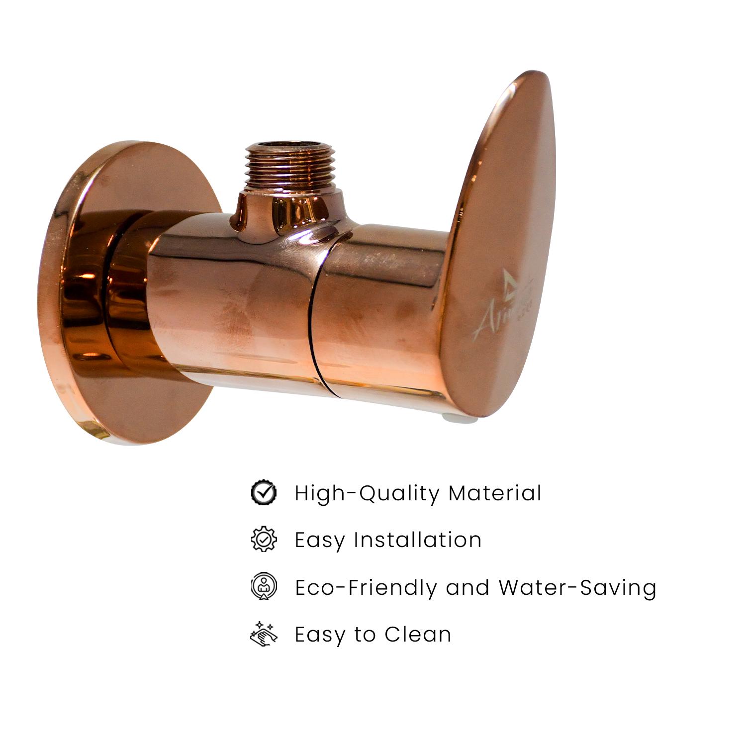 D&B Bathware Nautica Brass Angle Valve Tap | Angle Cock with Wall Flange | Stop Cock for Bathroom | Premium Finish | Water Flow Control Valve | Single Lever Shower Valve (Plushy Rose Gold)