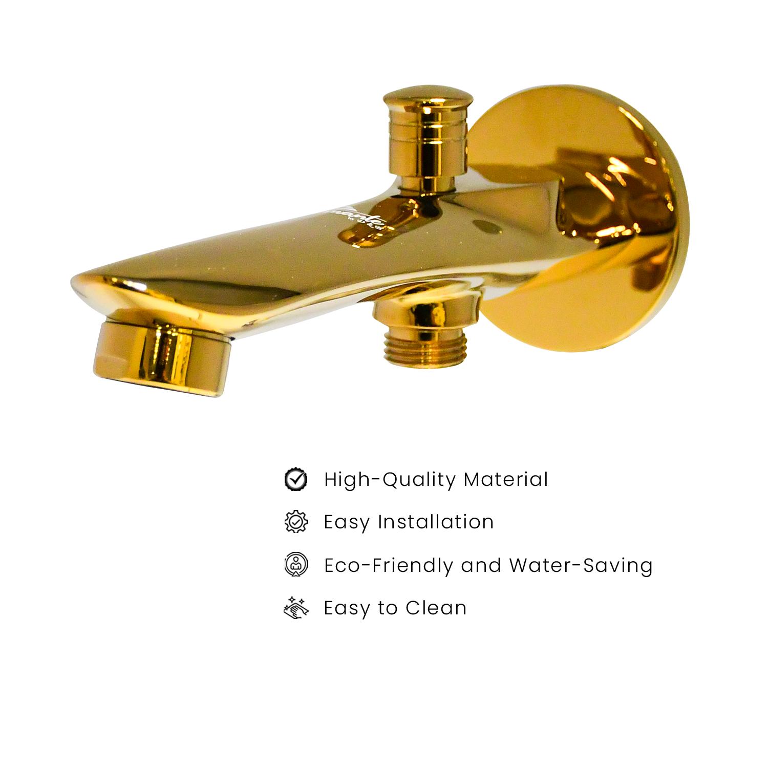 D&B Bathware Nautica Full Brass Bath Spout | Tip Ton Tap with Wall Flange | High Flow Bath Tub Spout | Provisional For Hand Shower | Premium Bathroom Faucet Set (Tip Ton, Empire Gold)