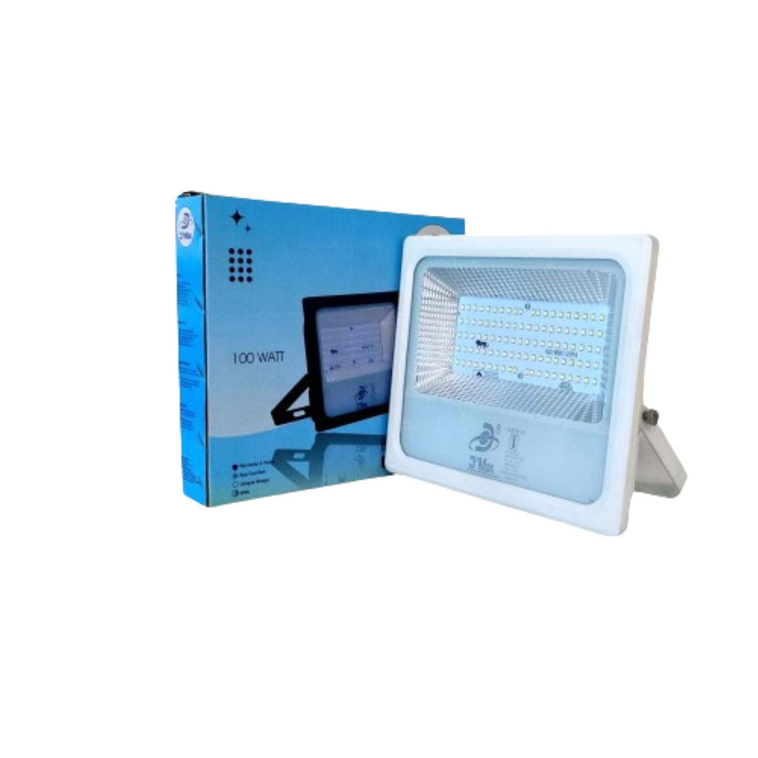 D'Mak Automatic Sensor System LED Flood Light White Focus White Body Down Chock Waterproof IP65 for Outdoor Purposes (100W LED Flood Light, 1)