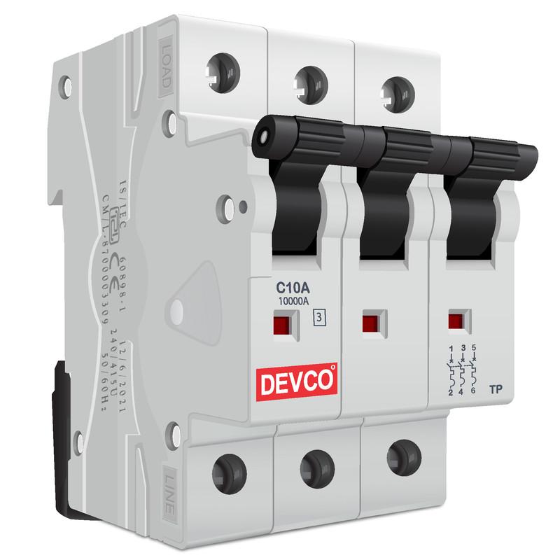 DEVCO MCB30100C Three Pole 10 A C Curve MCB_0
