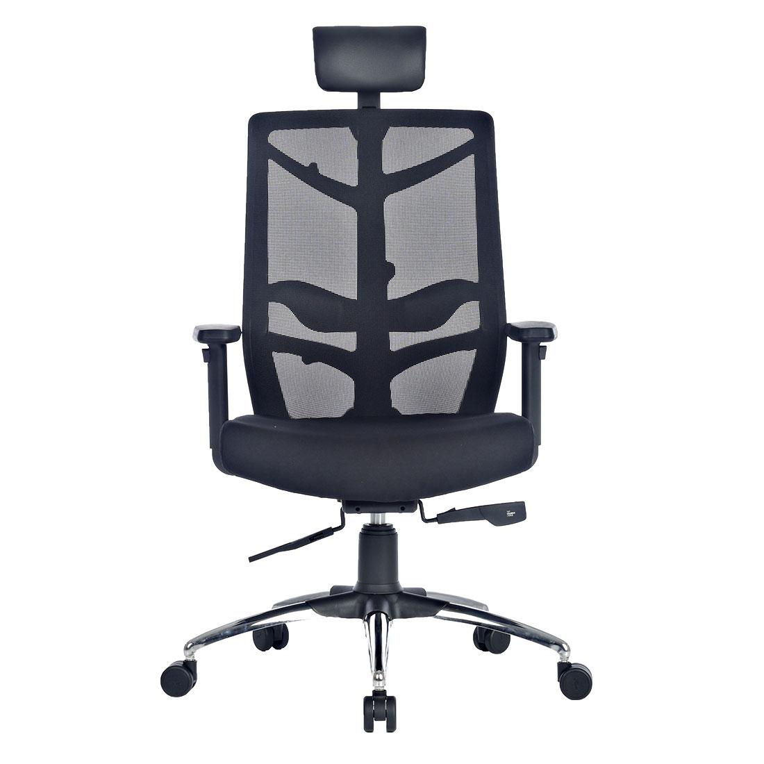 High Back 360° Degree Revolving Chair. All Over Size is : 630L x 675D x 1300H mm. The Chair Made of Full Mesh In Black Colour. It Will Comes In Matte Finish In Contemporary Style. Arms : Armrest is Having Two Adjustment Heights Up & Down. Use of Ply: 12 mm Thick Hot Pressed BWR Plywood is Grade - 303 For Seat. Seat: 40 ± 2 mm Thick Polyurethane Foam With Density 32 ±3 Kg Per CU Meter For Best Quality Cushioning In Seat. Back : Frame of Design Shall Be Curved Made of Two Pieces Injection Moulded Frame Cover With Mesh.Backrest Support Adjustable Lumbar Support. Mechanism : Self Weighted Multi Locking Mechanism. Gas Lift 100 mm Telescopic Hydraulic. Base : 650 mm Chrome Base With Smooth Castors.