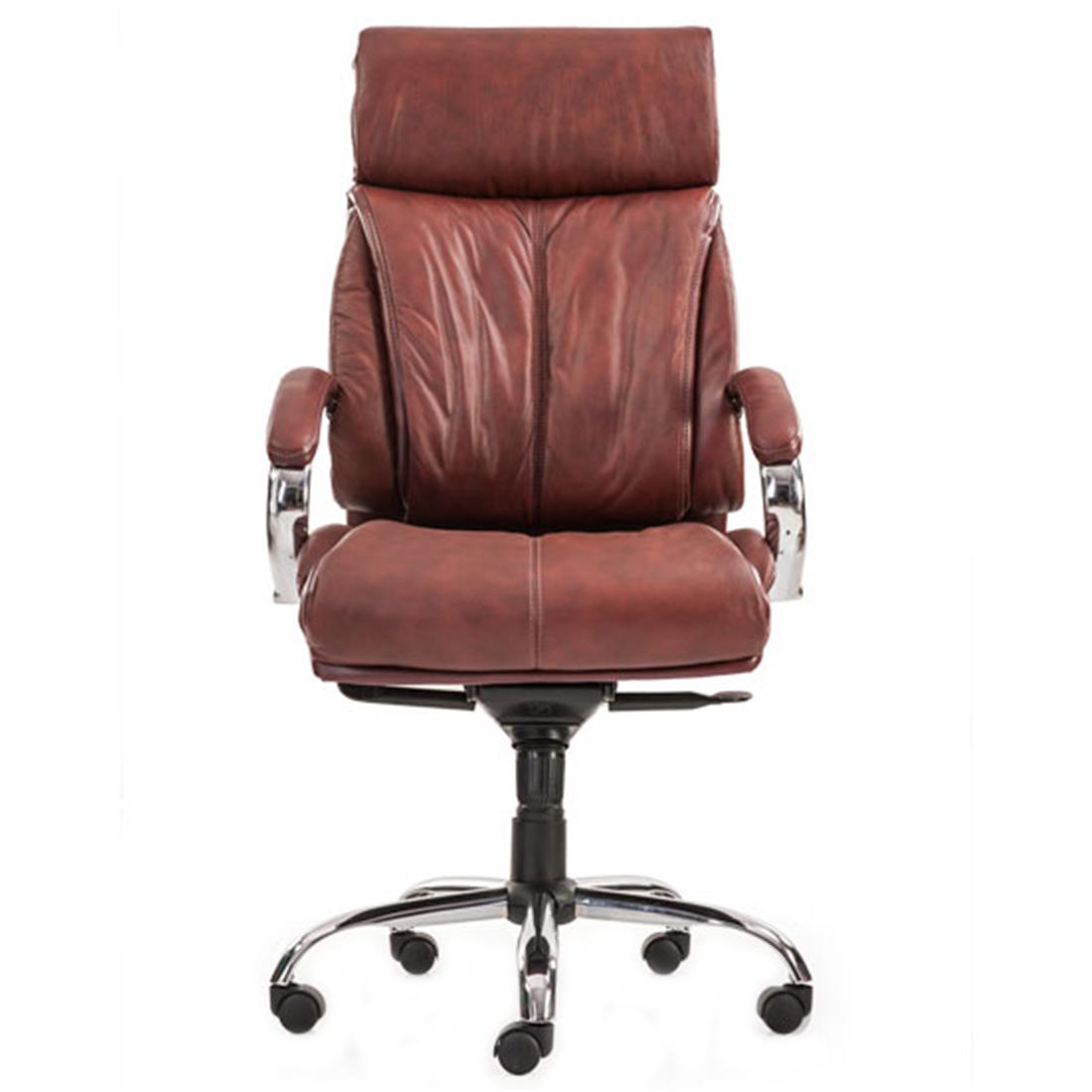 High Back 360° Degree Revolving Chair. The Chair Made of Full Natural Leather In Red-Burgandy Colour. It Will Comes In Matte Finish About Style Type is Modern. Chrome Finish Arm Rest Covering With Natural Leather Pad. 12 mm Thick Hot Pressed BWR Plywood is Grade - 303 For Seat and Back. 40 ± 2 mm Thick Polyurethane Foam With Density 32 ±3 Kg Per CU Meter For Best Quality Cushioning In Seat. 40 ± 2 mm Thick Polyurethane Foam With Density 32 ±3 Kg Per CU Meter For Best Quality Cushioning In Back. Backrest Support Foam Design Based On Symmetrical Lumbar Support. Synchro Multi-Locking Mechanism. Gas Lift 60mm Telescopic Pneumatic, Class 4 Heavy Duty Gas Lift For Seat Height Adjustment Bearing Capacity 200Kgs.