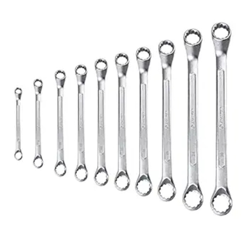 The Eastman spanner set contains ten spanners of the following sizes: 6x7, 8x9, 10x11, 12x13, 14x15, 16x17, 18x19, 20x22, 21x23, 24x27mm, respectively. 21x23, 24x27mm, respectively. A set of 10 spanners made of chrome vanadium steel offers a sharper appearance and better corrosion resistance.