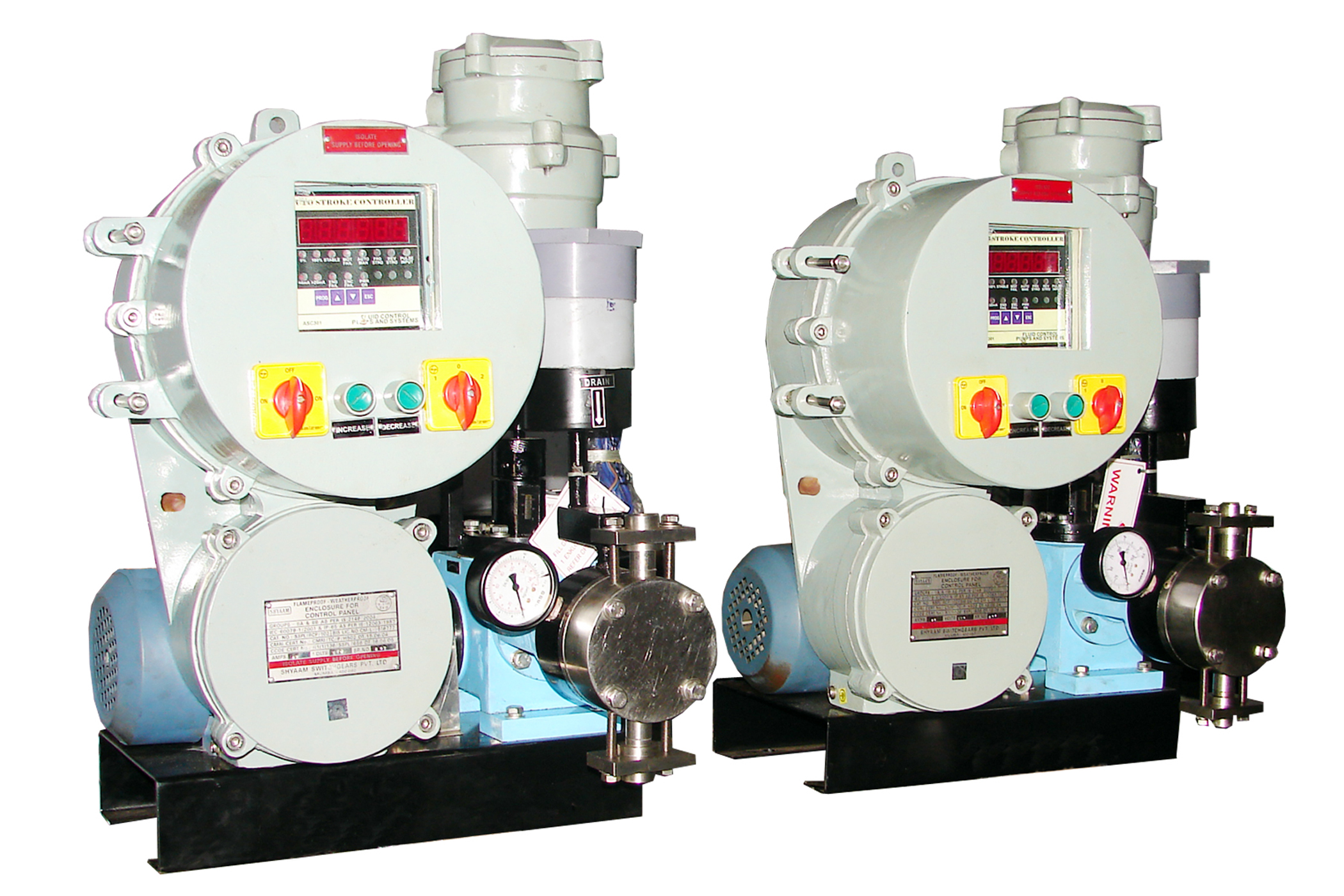 The system consists of Pump, Motor, Converter, Digital controller Proximity switch , The pump can be controlled remotely giving advantage while controlling the discharge as per your process needs, The stroke control can be varied. The accuracy of flow is +/-1%.