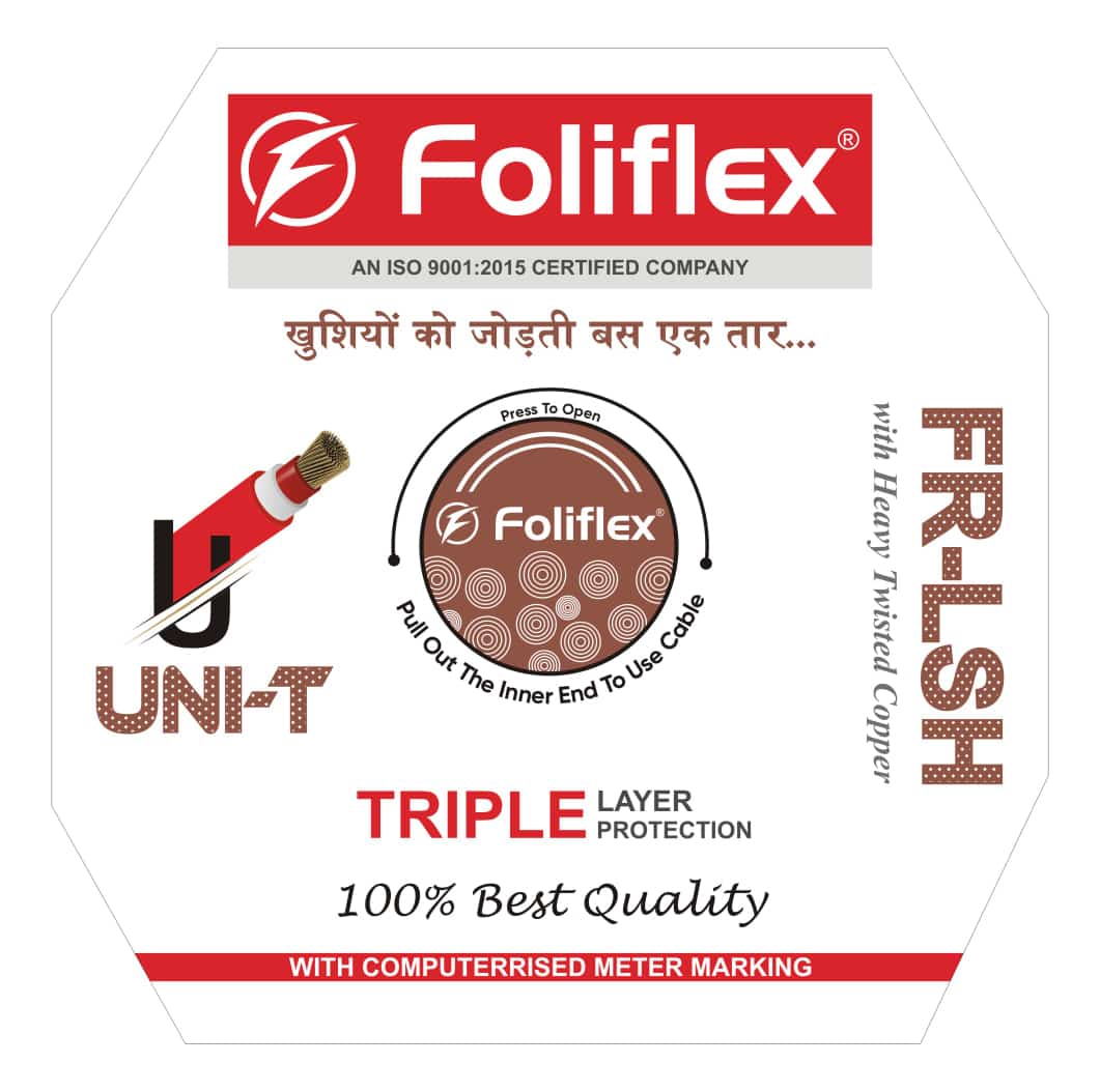 Comprised of thin strands of electrolytic copper which are multi-drawn for uniformity of resistance, dimension and flexibility. The drawn strands are UNI-T with high precision and compacted. Thus forming a perfectly circular conductor which enables reduction in overall diameter for space saving in high density wiring. Heat resistant flame retardant Triple layer of PVC insulation comes with FR-LSH property which retards the propagation of flame