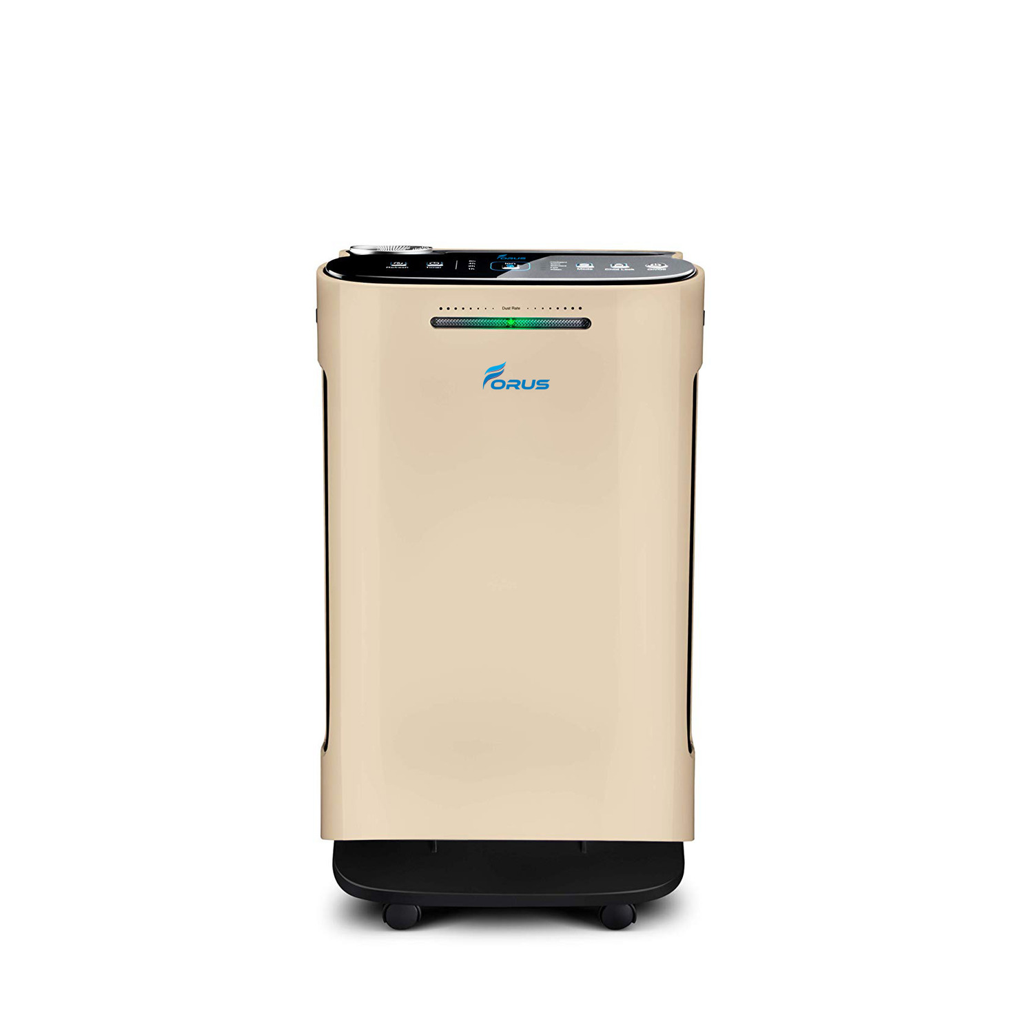 The Forus Air Purifier offers powerful 5-stage air purification for your home or office, utilizing True HEPA, anti-bacterial, carbon, plasma, and ion technologies to capture and neutralize 99.9% of harmful particles like PM2.5, dust, smoke, pet dander, allergens, mold spores, odors, and bacteria. Ideal for spaces affected by allergies, pet odors, dust, smoke, or pollution, this purifier provides real-time air quality updates on its digital display and features a color-coded LED light indicator: Green for good air, Yellow for moderate, and Red for unhealthy levels. With remote control connectivity and a touch display, you can easily monitor and manage air quality, adjust fan speeds, and receive filter alerts from your phone. Sleek in design and portable with built-in wheels, the Forus Air Purifier is the perfect solution for keeping air clean in bedrooms, living rooms, offices, and other indoor spaces.