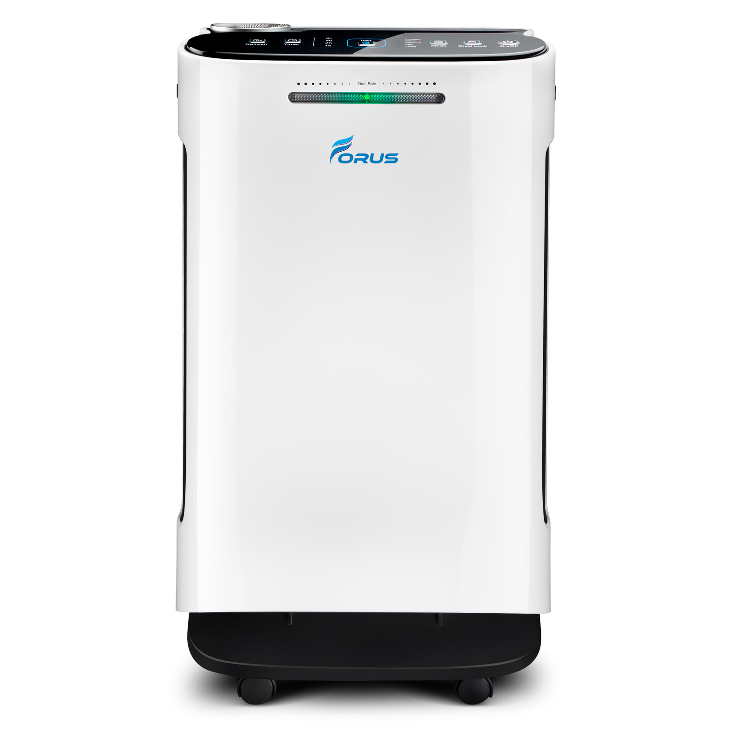 The Forus Air Purifier offers powerful 5-stage air purification for your home or office, utilizing True HEPA, anti-bacterial, carbon, plasma, and ion technologies to capture and neutralize 99.9% of harmful particles like PM2.5, dust, smoke, pet dander, allergens, mold spores, odors, and bacteria. Ideal for spaces affected by allergies, pet odors, dust, smoke, or pollution, this purifier provides real-time air quality updates on its digital display and features a color-coded LED light indicator: Green for good air, Yellow for moderate, and Red for unhealthy levels. With remote control connectivity and a touch display, you can easily monitor and manage air quality, adjust fan speeds, and receive filter alerts from your phone. Sleek in design and portable with built-in wheels, the Forus Air Purifier is the perfect solution for keeping air clean in bedrooms, living rooms, offices, and other indoor spaces.