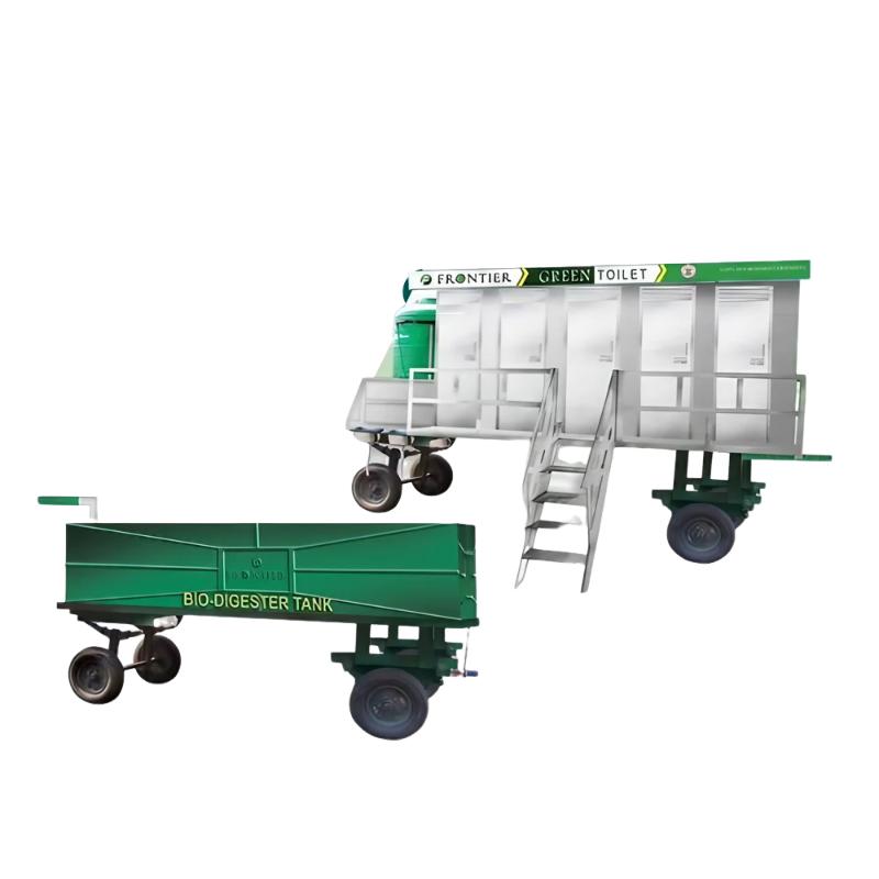 Community Trailer Mounted Mobile Stainless Steel Toilet set with provisions of separate Male and Female utility area. Other Details: Male unit comprises 4 IWC/Urinal, 1 EWC, 1 Hand Washbasin Female unit comprises of 4 IWC/Urinals, 1 EWC, 1 Hand Wash basinAll internal walls, doors, IWC, EWC and Hand washbasin made with 304/441 grade stainless steel for easy maintenance and long lasting.All toilet cabins and common areas provided with LED lights and exhaust fans.Provision of One-water tanks of 500 Liters capacity with all necessary internal plumbing connections.Provision of MS waste storage tank with valve to dispose waste to desired place.