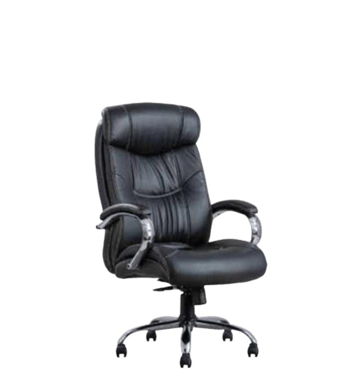 Revolving chair with Centre Tilt mechanism High quality PU Foam and recrown with heavy leatherette Fixed armrest with foam leatherette padding with Chrome base and Nylon castors
