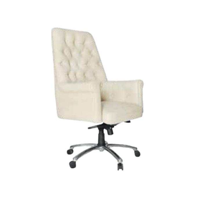 Revolving chair with Centre Tilt mechanism High quality PU Foam and recrown with heavy leatherette Fixed armrest with foam leatherette padding with Chrome base and Nylon castors