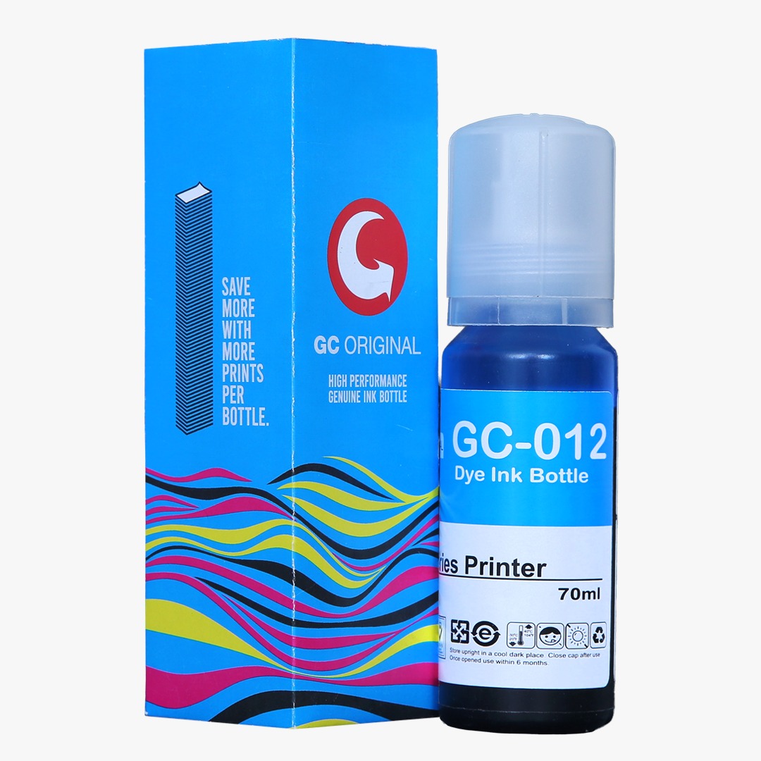 GC Original 012 cyan ink 70 ml compatible for Epson L8180/L8160. Paper yield unto 2000 pages. Designed for use in India, this genuine ink bottle ensures vibrant, long-lasting prints for your documents and photos. It’s compatible with a wide range of Epson printers, providing you with versatility and convenience.