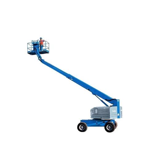 Genie® Telescopic booms offer greater horizontal outreach than any other type of aerial platform Perfect for construction and industrial applications Genie® telescopic S™ booms are also designed for productivity with the traction and drive speed you need to get around the job site and to the work area. Self levelling platform, 160 hydraulic platform rotation. Proportional joystick controls Drive enable. AC power cord to the platform, Horn, Hour meter, Tilt alarm, and Descent alarm. Two speed wheel motors Positive traction drive 12 V DC auxiliary power emergency lowering system. Standards Compliance ANSI, CSA, CE, AS. Other options Like 2 WDrive, 4 WDrive, and Oscillating axle.