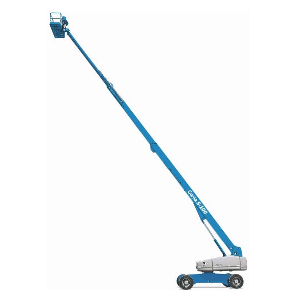 Genie® Telescopic booms offer greater horizontal outreach than any other type of aerial platform Perfect for construction and industrial applications Genie® telescopic S™ booms are also designed for productivity with the traction and drive speed you need to get around the job site and to the work area. Self levelling platform, 160 hydraulic platform rotation. Proportional joystick controls Drive enable. AC power cord to the platform, Horn, Hour meter, Tilt alarm, and Descent alarm. Two speed wheel motors Positive traction drive 12 V DC auxiliary power emergency lowering system. Standards Compliance ANSI, CSA, CE, AS. Other options Like 2 WDrive, 4 WDrive, and Oscillating axle.