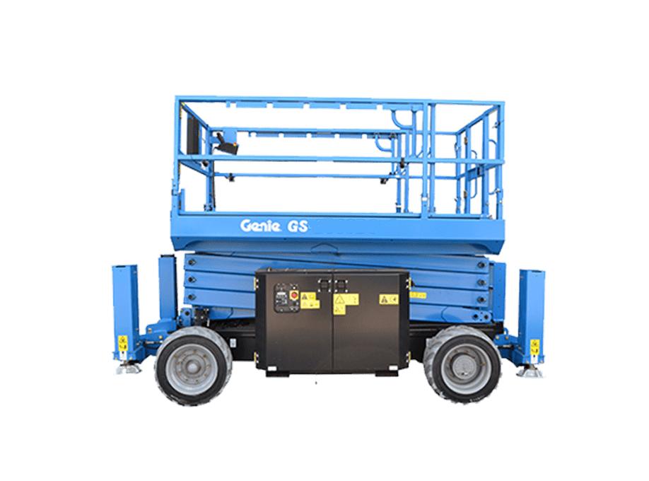 True start-to-finish machine, the Genie® GS™-3969 DC rough terrain slab scissor lift is excellent for indoor and outdoor construction, maintenance and installation applications with firm, level surfaces...