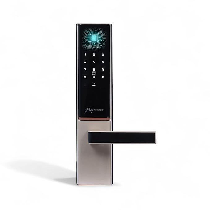 Upgrade your home security with the advanced technology of the Godrej 7-in-1 NFC Smart Digital Lock in premium Vegas Gold finish. Designed for modern wooden doors in homes and offices, this smart lock offers multiple access modes including biometric fingerprint, PIN code, NFC card, mechanical key and more—delivering complete flexibility and convenience.