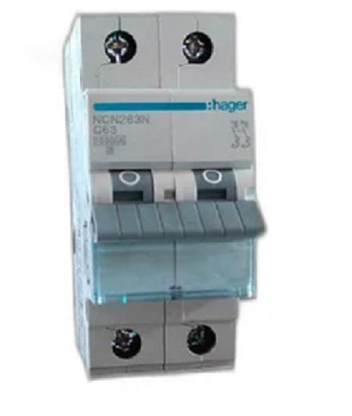 Hager, MCB, Double Pole, 63A NCN263N