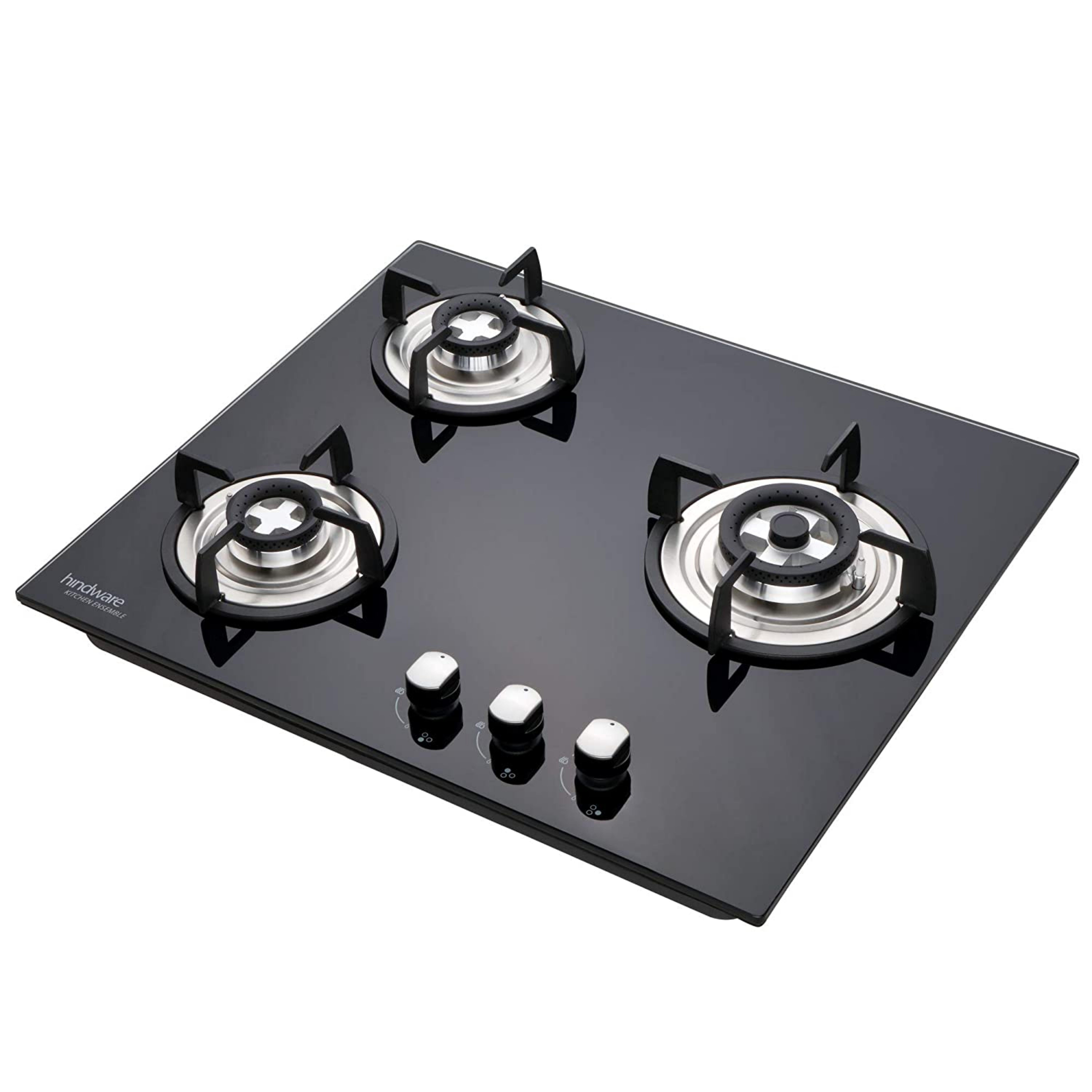 Hindware Nora Plus 60 Black 3 Burners Glass Cooktop_0