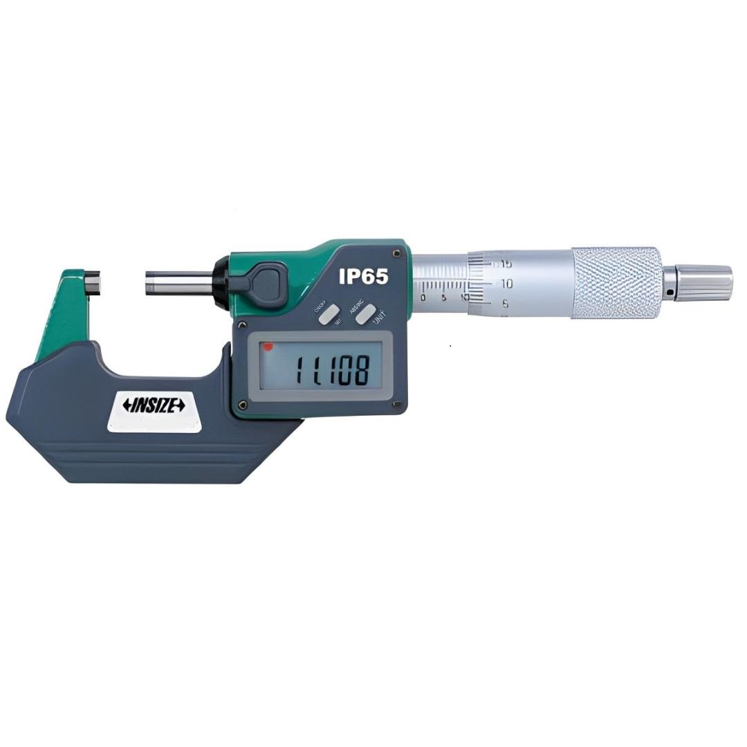 INSIZE Digital Micrometer with Carbide Measuring Faces: boasting a resolution of 0.001 mm/0.00005", it ensures precise measurements in various industries. Featuring intuitive button functions and an automatic power-off feature, it offers user-friendly operation and efficient battery usage and Ability to transmit data. With durable carbide measuring faces and a ratchet stop, it guarantees accuracy and reliability even in demanding environments. Supplied with a spherical anvil, it extends its versatility for measuring curved or irregular surfaces.