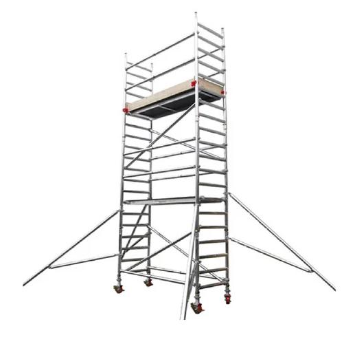 JEYES Double Width Scaffolding with stairway ladders made of Aluminium, fitted with nylon wheels with braking system, consisting of H frames, straight bars, cross bars, H support and side support mechanism with dismantling and reassembling feature.