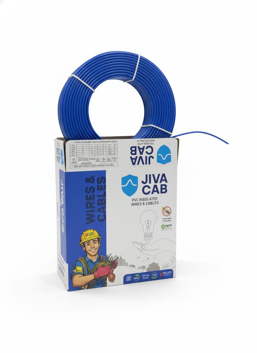 House Wire: Made with 99.97% pure copper and HRFR PVC insulation, Jiva Cab wires offer high conductivity, fire resistance, flexibility, and long-lasting safety for reliable home and industrial wiring.