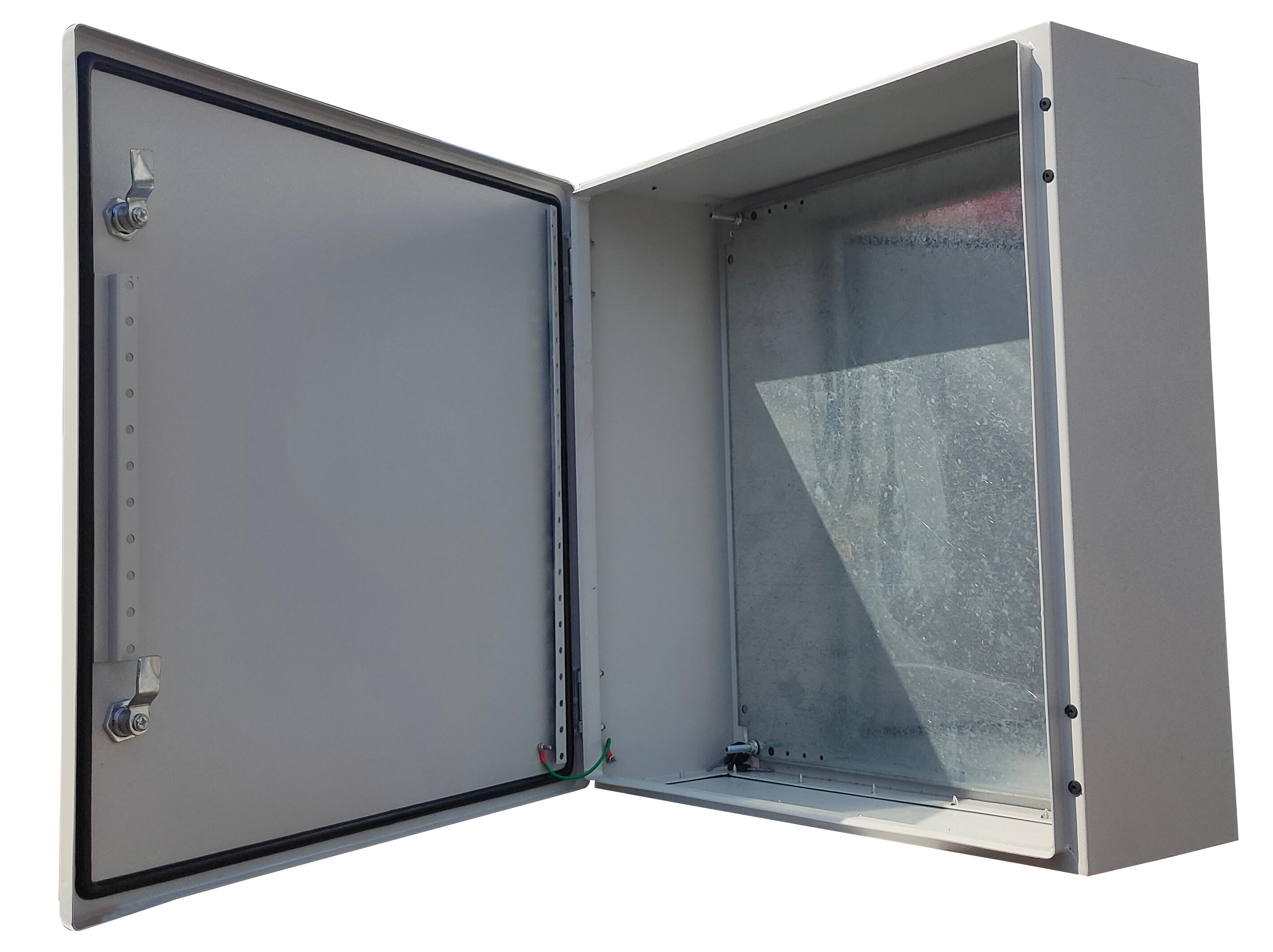 Kapon Enclosures (IP65) are designed to accommodate various types of switchgear and controlgear assemblies to suit a variety of electrical installations in commercial and light industrial premises. They are designed for outdoor applications up to IP65. Made of high quality CRCA sheet of thickness up to 1.5mm. • Matt-finish polyester powder coated in RAL-7035. • Standard mounting plate made of GI sheet of 2mm thickness. • Complies with CE standards. • Degree of protection IP55.
