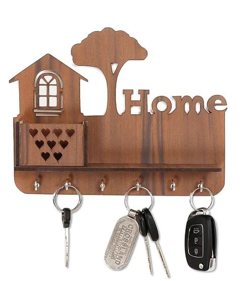 Key Stands Wood 270 x 170 mm 6 Hooks Brown_0