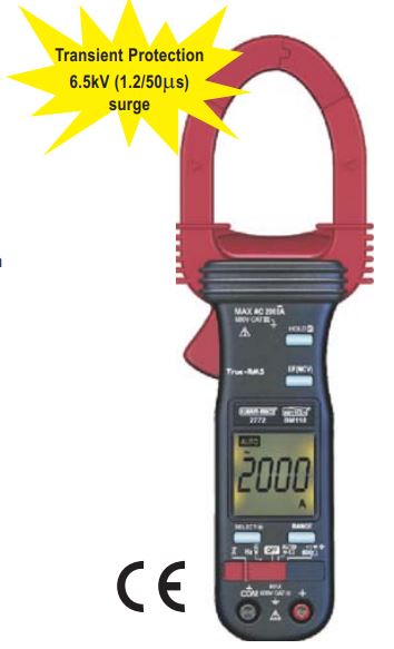 2000A AC Clamp-on + Full Multimeter ranges, AC True RMS Voltage & Current functions, Autocheck feature (Automatic DCV, ACV & Ohms selection), Fully Autoranging on all functions, Back lighted display & ...