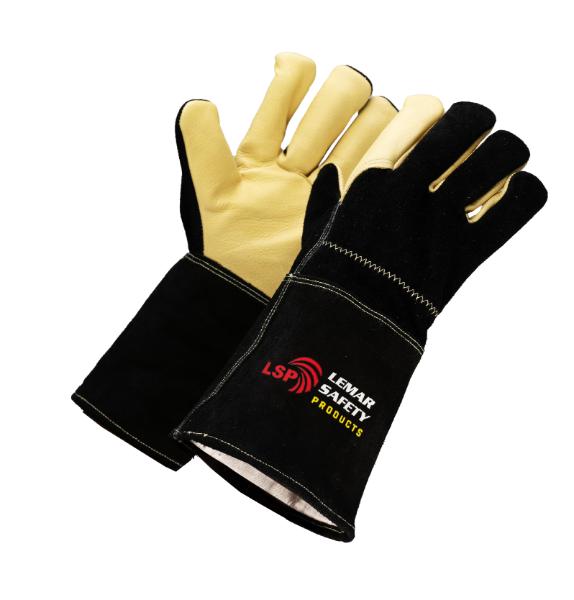 Engineered for high-performance protection, the Yellow/Black Welding Gloves combine flexibility and strength with rugged durability. Featuring a premium yellow cow grain leather palm, forefinger, and thumb for superior dexterity, and a black split leather back and cuff for robust resistance, these gloves are ideal for high-heat industrial environments. Kevlar® stitching enhances structural integrity, while the wing thumb construction ensures natural hand movement. A soft fleece lining adds warmth and comfort during prolonged wear, and a shirred elastic top delivers a secure, contoured fit.
