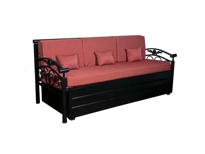 M R Mild Steel 3 Seater Black and Maroon Sofa Set_0