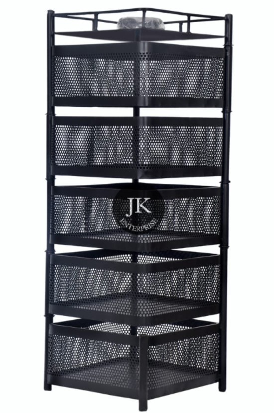 Mild Steel 5 Shelves Vegetable Rack Trolley 12.5 x 12.5 x 16.5 inch_0