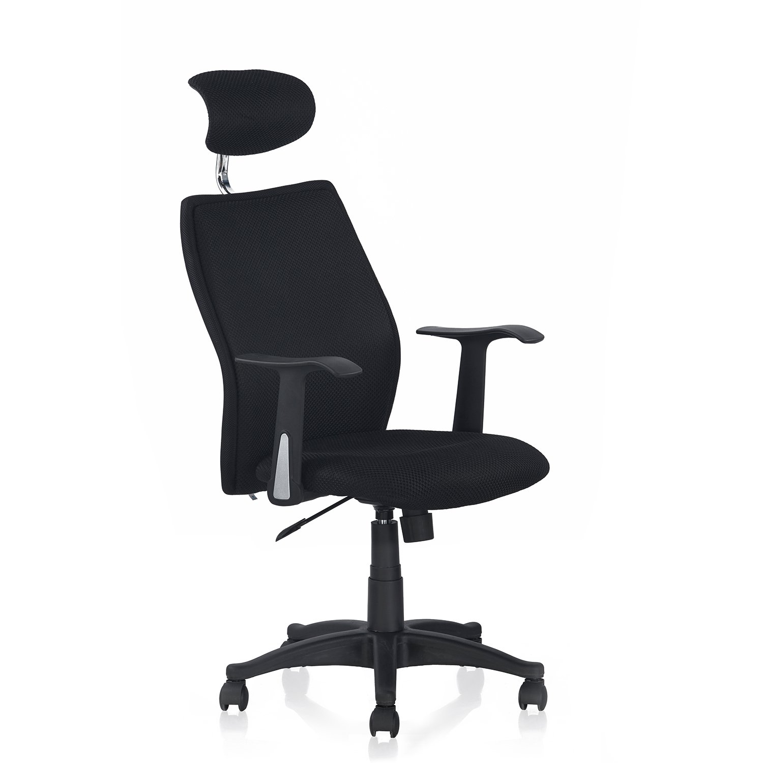 Nilkamal Blaze High back Chair, Black/Black, A high back chair with a head rest, this office chair will prove to be the solution for those who spend long hours seated during work. It has a luxurious fa...