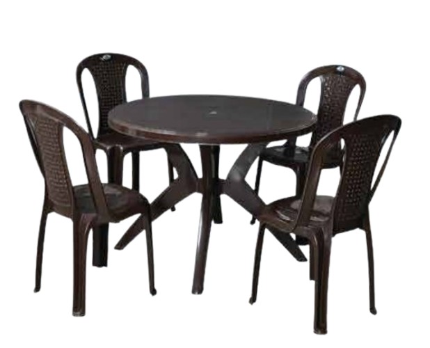 Nilkamal PVC 4 Seater Traditional Dining Table Set Round Season Rust Brown_0