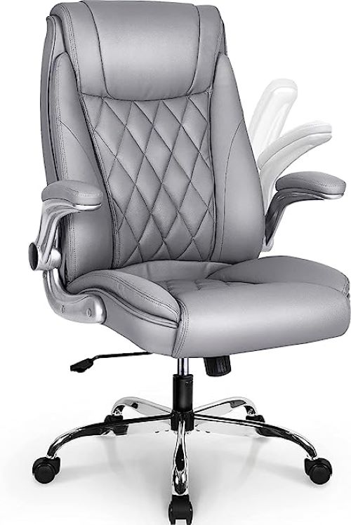 Comfortable Executive Office Chair Integrated with premium leather and high-density sponge filling with seat & backrest together, the chair is super soft and comfortable, and the backrest curve fits people’s body shape perfectly, which can relieve back pressure efficiently; PU wrapped & sponge filled armrests can also ease your elbow and shoulders greatly, bringing much more comfort to your life.