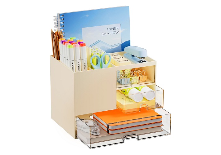 Office Desk Organizer 8 x 5.6 x 6.1 inch Beige_0