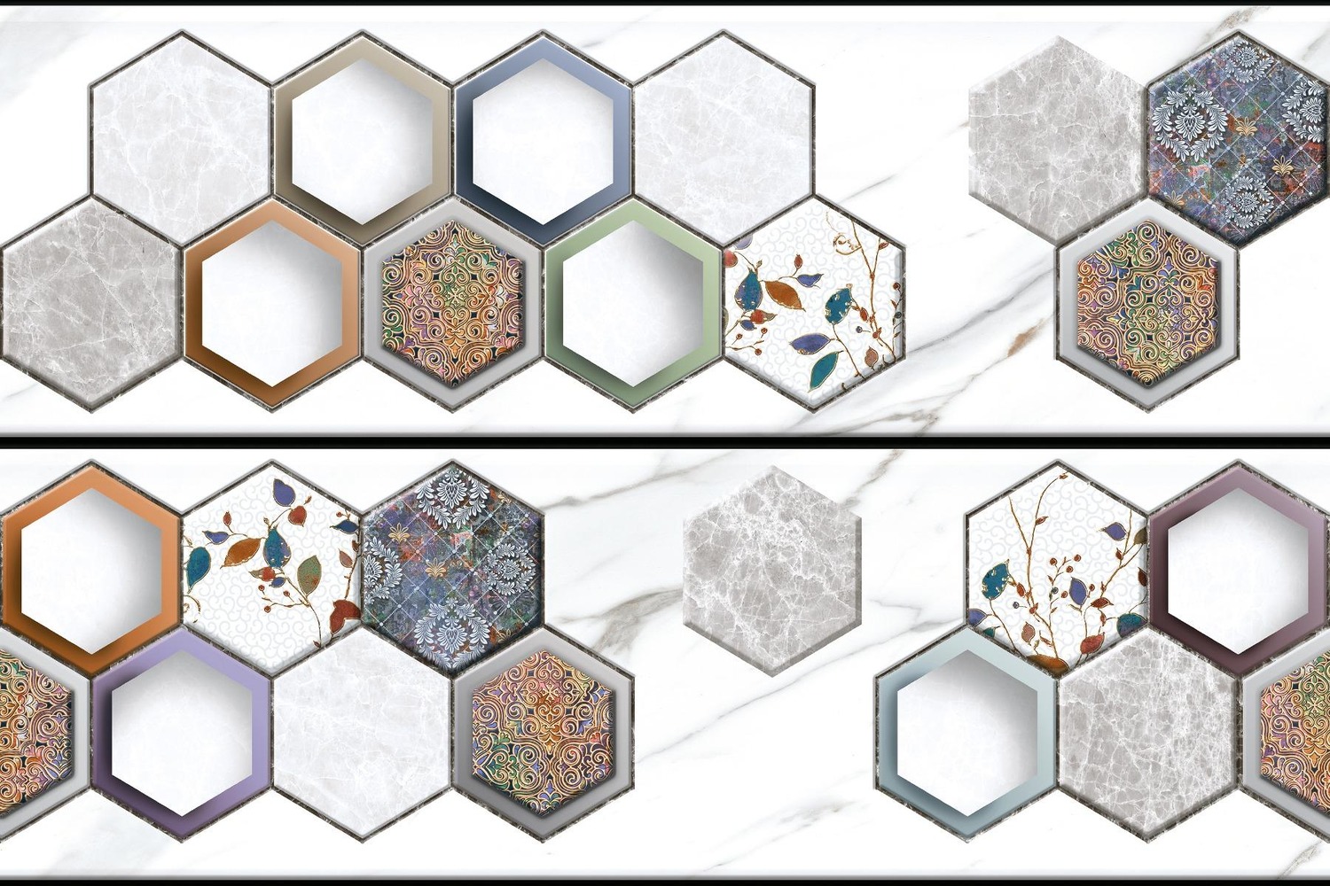 Orientbell 300 x 450 SHG He x agon Statuario Marble HL 6 Pcs Prem Thickness as Per Indian Standards Recommended area Bathroom Tiles , Living Room Tiles , Kitchen Tiles , Bedroom Tiles , Balcony Tiles